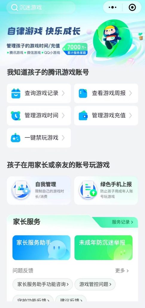 以腾讯为例,建有“成长守护”系统和未成年人家长服务平台。大家在微信上关注腾讯成长守护,并绑定孩子的游戏账号后,就可以查询孩子的游戏记录、管理孩子的游戏时间,还可以管理孩子的游戏充值行为,一键禁止孩子玩游戏。